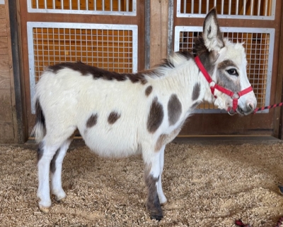 Farmstead's Colonel Hardin was born on May 26, 2025. He is quite a wooly, handsome spot! His Mother is our top producing jennet, Country Music's Eli Barsi, who is a NMDA Reserve National Champion Jennet and multiple Grand Champion Jennet during her show career. Colonel is Eli's ninth foal, and all of her foals have been champions in the show arena. Colonel's Daddy is four-time ACOSA National Champion and multiple NMDA Champion Jack, WLDF Tin Roof Sunday, who has sired many show champions and breeding stock for us and for others around the country and the world. With a pedigree like this one, Colonel is destined to be a champion in the show arena as he gets older.