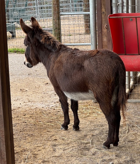 Mo was born at Appalachian Farmstead in August, 2019, and was sold as a yearling to a young family as a companion for another jennet that they had at the time. After maturing and having two foals for that family, they decided that their donkeys couldn't be accommodated in their immediate future plans, so I happily accepted Mo back at our farm into our group of brood jennets. Mo is by our Senior Herd Sire, four-time ACOSA National Champion Jack, WLDF Tin Roof Sunday, and out of a wonderful jennet which we raised, Farmstead's Matilda Faye. Mo is in foal to a very nice dark brown NLP jack named Dee's Little Vinnie, and we are hoping for a beautiful foal from Mo in February or March, 2026.