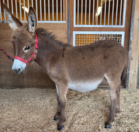 Rusty has only had a few foals for us over the years, due to our limited breeding program; however, these foals have performed admirably, winning a number of championships. These include Farmstead's Chessie, Reserve Champion Jennet at the Tennessee State Fair; Farmstead's Admiral Farragut, Grand Champion Gelding at the Tennessee State Fair and Tennessee Donkey Association High Point Gelding as a yearling; Farmstead's Popcorn Sutton, ADMS Reserve National Champion Donkey at 9 months old, Farmstead's Ruby Iris, NMDA National Champion Yearling Jennet, and Farmstead's Dixie Lee, NMDA National Champion Two Year Old Jennet.